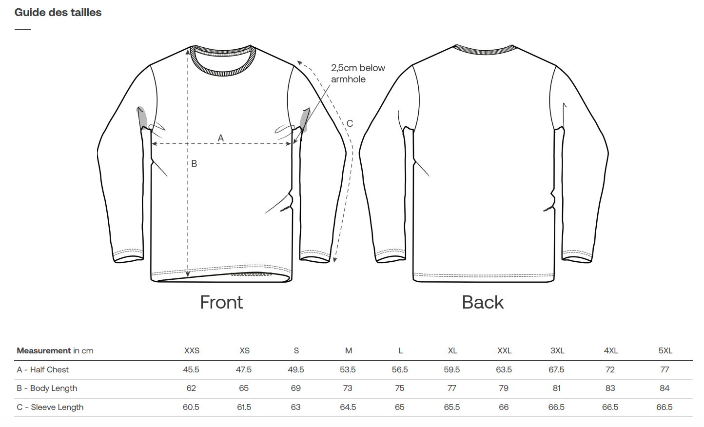 T-SHIRT UNISEXE À MANCHES LONGUES 100% COTON ORGANIQUE (180 g/m²)